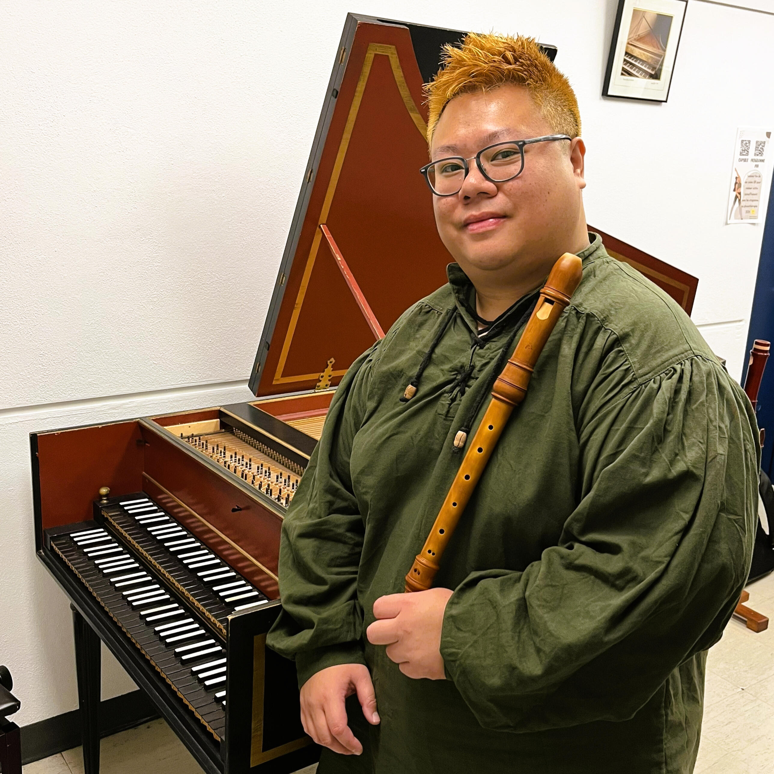 Kevin is a harpsichordist, a recorder player, and a piano teacher with a deep passion for early music. He is currently based in Quebec City, Canada.Kevin began his musical journey at the age of five with his first instrument, the melodica. A few months later, he started piano lessons, which continued throughout his early years in Hong Kong and later in France, where he pursued further studies. During his piano training, his professor frequently introduced him to Baroque repertoire—a genre Kevin deeply loved and which also happened to be his professor’s own specialty. This formative experience strongly shaped Kevin’s musical direction.Following the completion of his ABRSM (Associated Board of the Royal Schools of Music, UK) Grade 8 diplomas in Music Theory and Practical Piano, Kevin transitioned his focus toward the rigorous study of early music. His current research and practice center on Renaissance cantus firmus and figuratus, historical hexachordal theory, partimento, and Baroque composition . He is presently furthering his specialization in harpsichord under the tutelage of Mélisande McNabney.In addition to keyboard instruments, Kevin is also passionate about woodwind music. During his elementary and secondary school years, he played recorder in a recorder ensemble, clarinet in a school orchestra, and sheng in a traditional Chinese orchestra. He is currently a member of a recorder ensemble in Quebec City called Sofabec.With the aim of developing his own Baroque ensemble, Kevin founded Folia Sinfonia, a small early music group in which he performs on harpsichord and recorders. For more information, please visit the ensemble’s official website and YouTube channel.Folia Sinfonia website